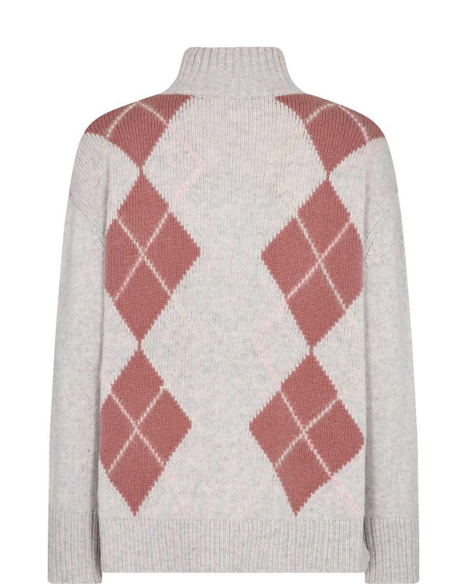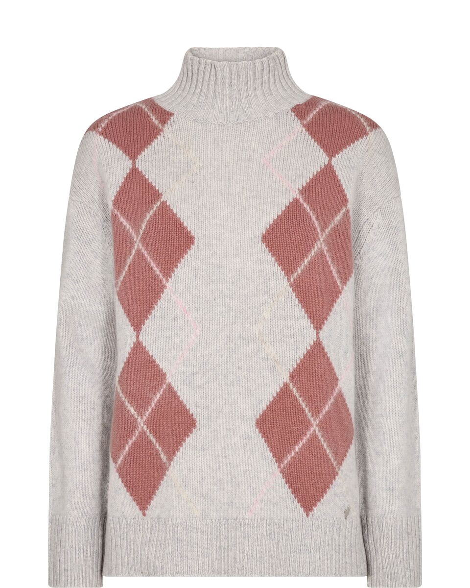 Mos Mosh Zima neule on väljä ja tunikamainen, harmaapohjainen villaneule, jonka etuosassa on kauniit roosat salmiakkiruudut. Materiaali ei karvastele ja on pehmeää, ja Zima neule onkin täydellinen syksyyn ja talveen, yhdistettynä niin leveän kuin kapean housun kanssa, sekä ihanasti arkeen farkkujen kanssa. 8,5 cm korkea kaulus on puolipoolomainen, hihansuulla ja helmassa on löysä resori ja helmassa myös sivuhalkiot. Neuleen pituus on noin 60 cm ja hihan pituus noin 52 cm, koosta riippuen.