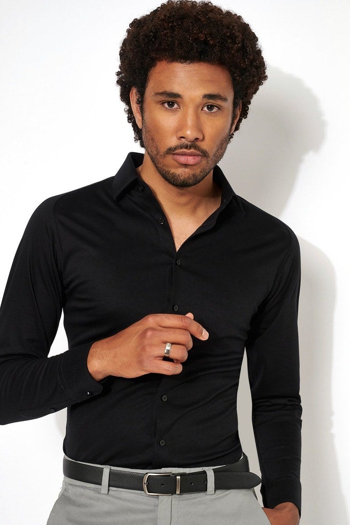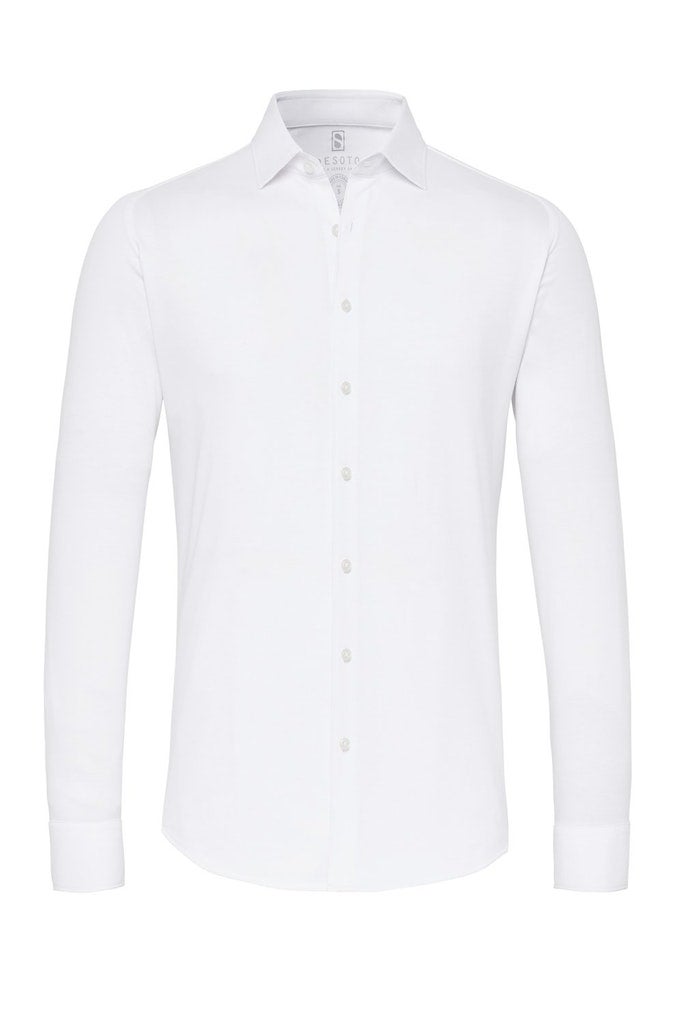 Desoto Kent paidat ovat päällä kuin trikoopaitoja, mutta niiden ulkonäkö on erittäin tyylikäs ja siisti — tämän helppohoitoisen uutuuspaidan myötä voit sanoa hyvästit perinteiselle kankealle pukupaidalle! Desoto Kent paidassa on mukava, joustava jerseylaatu, jonka puuvillamateriaali on iholla miellyttävän pehmeää, sekä tyylikäs slimmattu malli ja jämäkkä ja ryhdikäs kaulus, joka pysyy muodossaan. Paidan kaareva helma on tyylikäs myös housun päällä. Hihassa on helppo pääntielle ulottuva raglanmalli, ja mansetilla halkio, nappi ja kaksi säätövaihtoehtoa. Taulukon mitat on otettu kangasta venyttämättä; kangas venyy noin +3 cm.