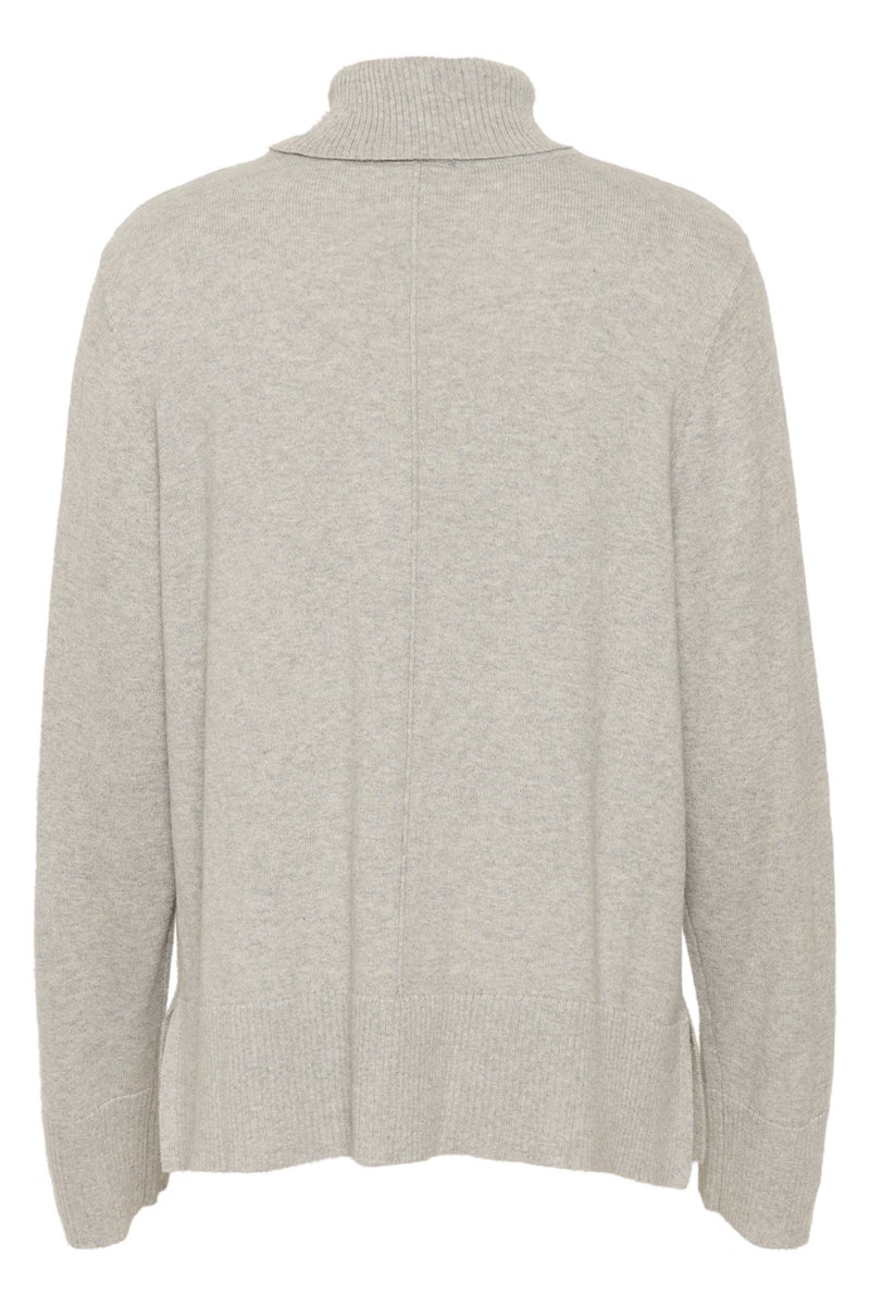 Cream Anva neule on tyylikäs, lämmin ja rento neule helppoon arkeen. Laatikkomainen ja löysä malli on ihana, ja täydentyy väljällä poolokauluksella ja löysähköillä hihoilla, sekä helman rennoilla sivuhalkioilla. Edessä ja takana on kauniit päälle ommellut saumat. Lisäksi harmaa ja musta väri tekevät tästä loistavan luottoneuleen!