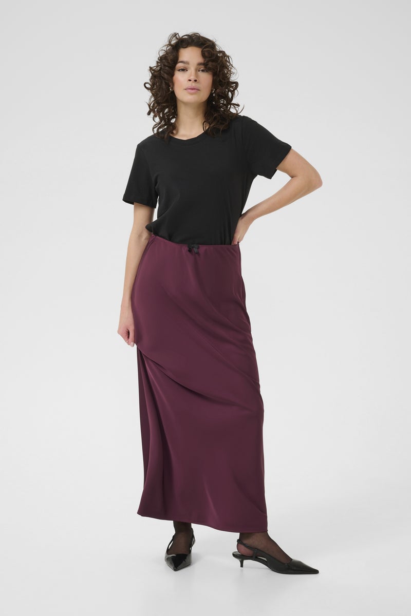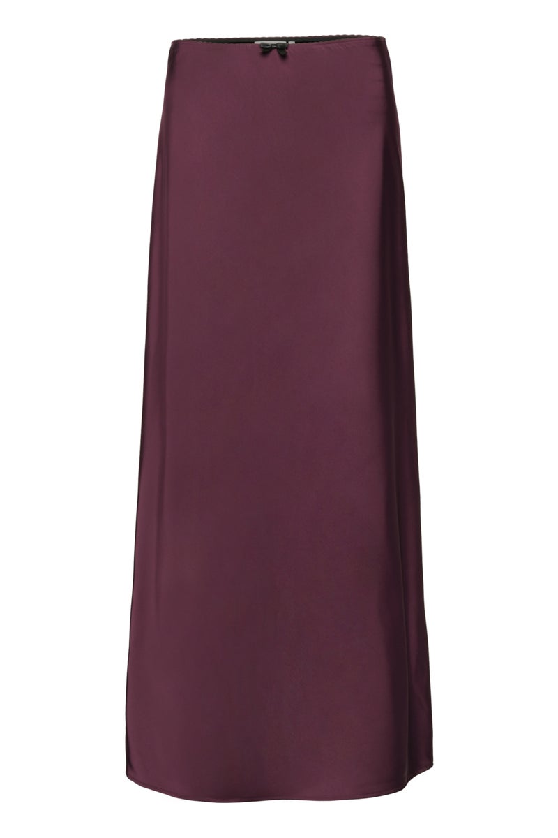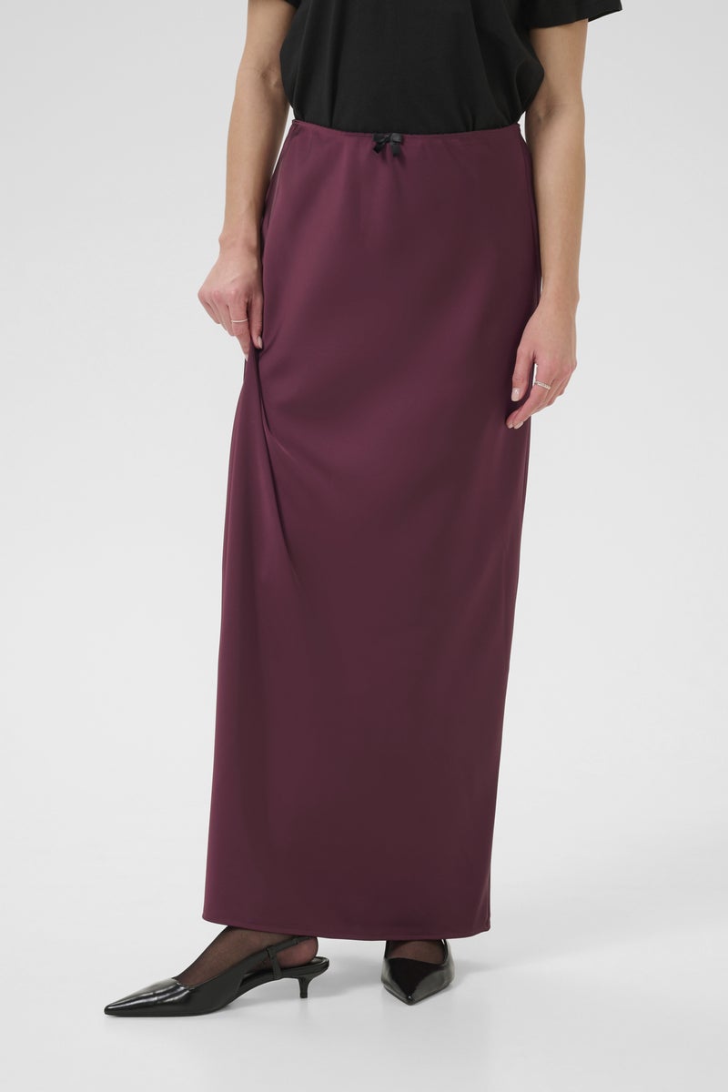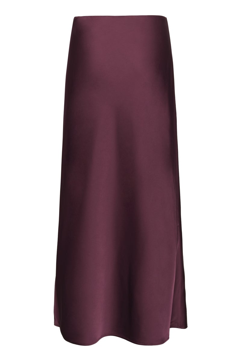 Kaffe Hill hame on kaunis pitkä satiinihame harmaana ja viininpunaisena. Hameessa on keskikorkea vyötärö joustavalla kuminauhalla, ja sen imarteleva malli istuu kauniisti yläosasta ja levenee hillitysti alaspäin. Hameen kangas on upeasti laskeutuva ja liikkuva! Upea hame, joka taipuu suuresta juhlasta rennompaan käyttöön helposti: yhdistä niin juhlaviin paitapuseroihin, kuin ihaniin neuleisiin.