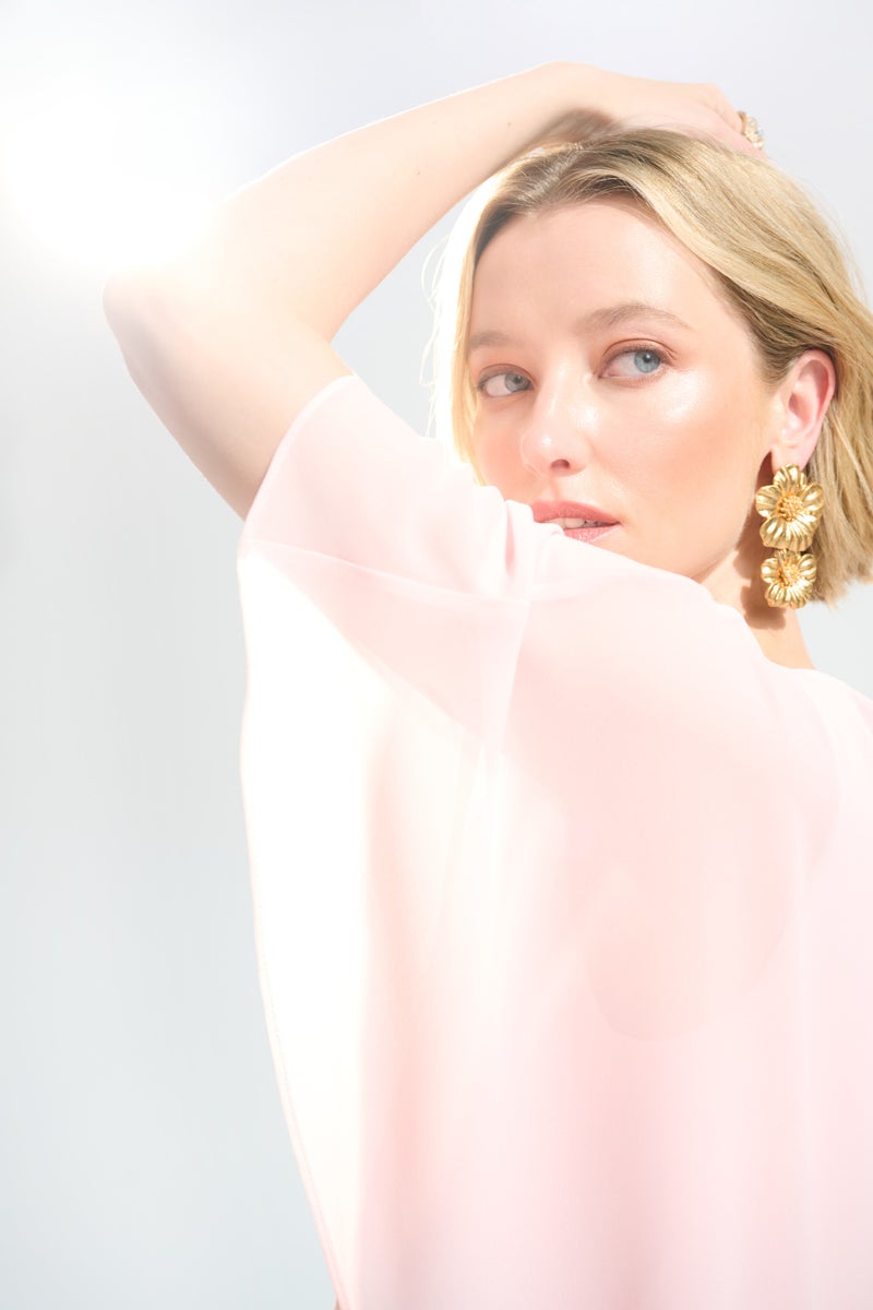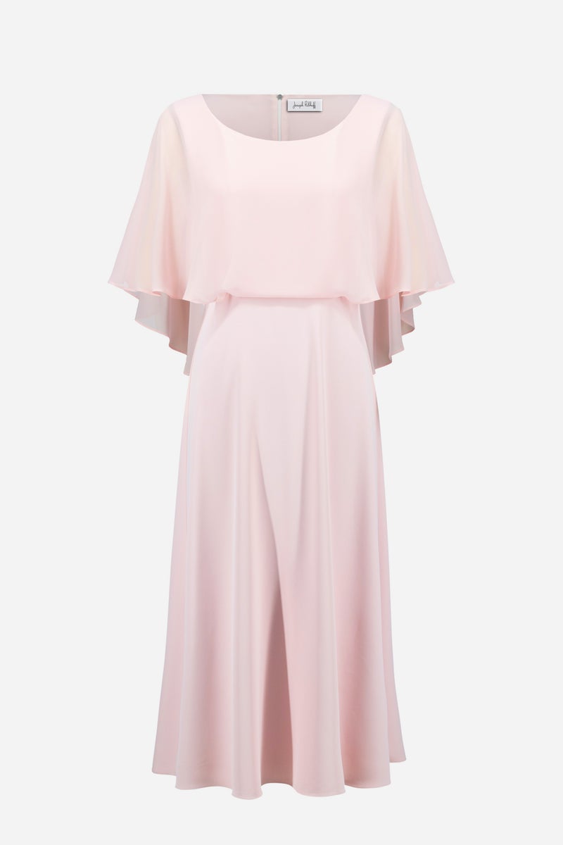 Joseph Ribkoff Chiffon Overlay juhlamekko yhdistää kotelomekon tyylikkyyden ja naisellisen, ilmavan keveyden hurmaavissa vaaleanpunaisen, vaaleansinisen ja tummansinisen sävyissä. Mekossa on klassinen pyöreä pääntie. Ilmava, sifonkinen keeppi kiinnittyy edestä ja peittää kotelomekkohihan laskeutuessaan kauniisti taakse. Keepin takaosassa on halkio, jonka alta paljastuu vetoketju kauniilla strassivetimellä. Mekon malli kapenee vyötärölle ja levenee helmaan. Täydellinen mekko suureenkin juhlaan!
