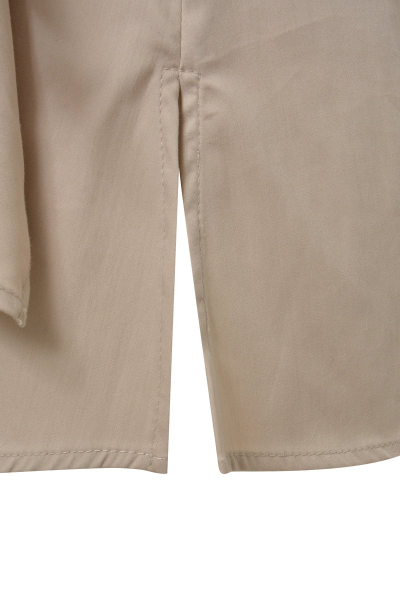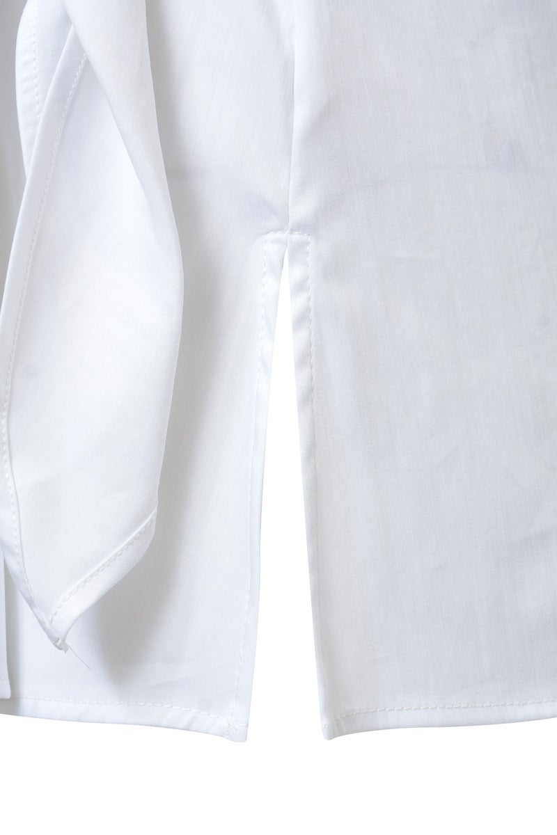 Milano solmittava paitapusero hurmaa valkoisen ja kitin sävyisenä sekä sopii niin työpäivään kuin vapaa-aikaan. Jujuna on imarteleva kietaisuyksityiskohta – oikeanpuoleinen solmu korostaa vyötäröä kauniisti ja luo asuun ihanan epäsymmetrisen helman. Lyhyet raglanhihat käänteillä, nappikiinnitys ja klassinen kaulus sekä helman halkio antavat puserolle tyylikkään ilmeen. Kevyt, hengittävä materiaali laskeutuu kauniisti ja tuntuu miellyttävältä päällä myös kuumina hellepäivinä.